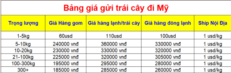 Bảng giá gửi trái cây đi Mỹ mới nhất